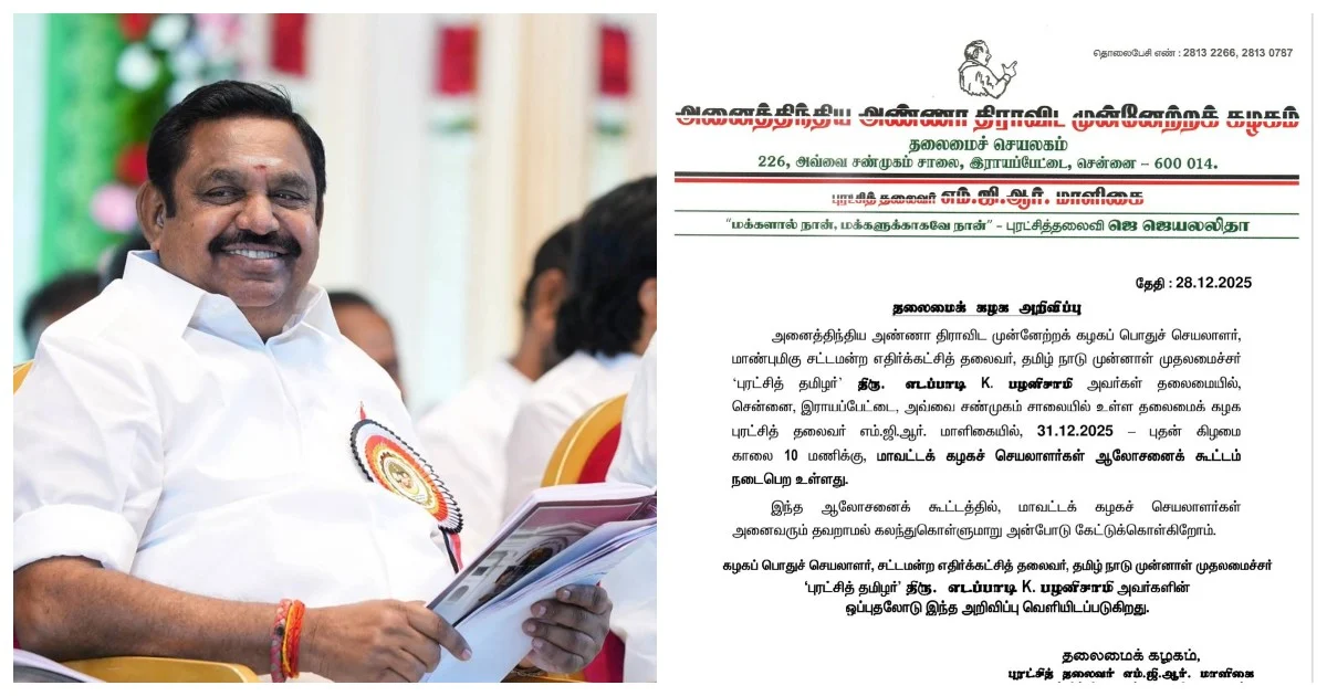 பாஜக கூட்டணியில் தொகுதி பங்கீடு.. டிச.31-ல் அதிமுக மா.செ.க்கள் கூட்டம்!