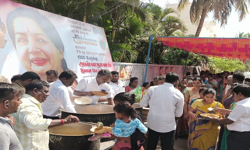 தமிழ்நாடு முன்னாள் முதலமைச்சர், எதிர்க்கட்சி தலைவர் மற்றும் அதிமுக பொதுச்செயலாளர் எடப்பாடி கே.பழனிசாமியின் ஆலோசனைப்படி, தமிழ்நாடு மேனாள் முதலமைச்சர் ஜெ.ஜெயலலிதாவின் 78வது பிறந்தநாள் விழா, நாடெங்கிலும் உள்ள அதிமுக தொண்டர்களாலும் கட்சி நிர்வாகிகளாலும் நலத்திட்ட உதவிகள் வழங்கி சிறப்பாக கொண்டாடப்பட்டது.